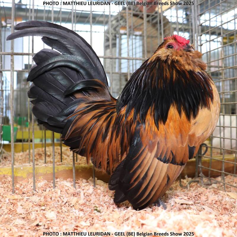 Neck: hackle feathers velvety-black with a narrow, golden-brown edging that widens slightly towards the throat; the lower edge of the hackle is almost entirely black.