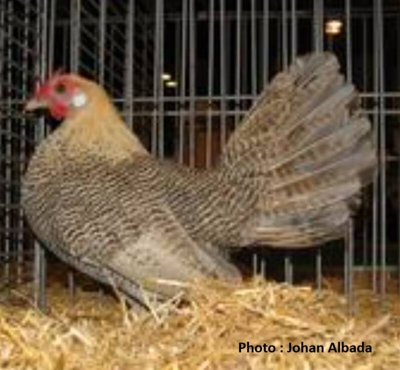 Neck: hackle warm lemon-yellow, some transverse penciling permitted at the very bottom of the hackle; front of the neck similar to the breast, but slightly less strongly penciled.