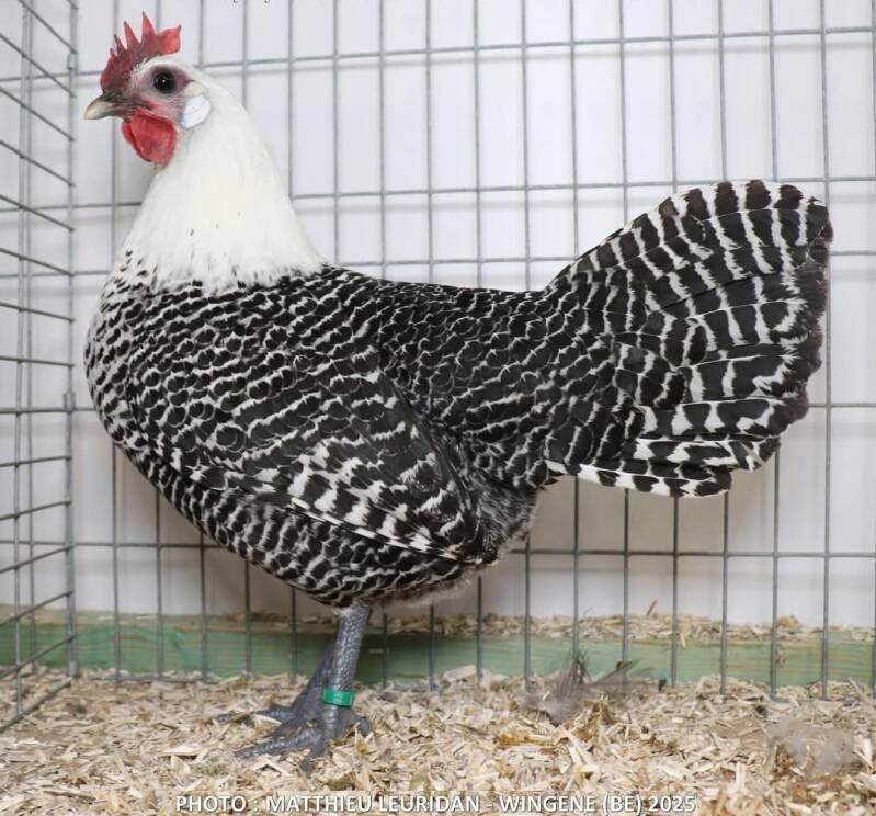 Breast: glossy green black transverse penciled, the black penciling becomes noticeably wider towards the bottom and rear than the silvery white; the tip of the feathers is as dark as possible.
